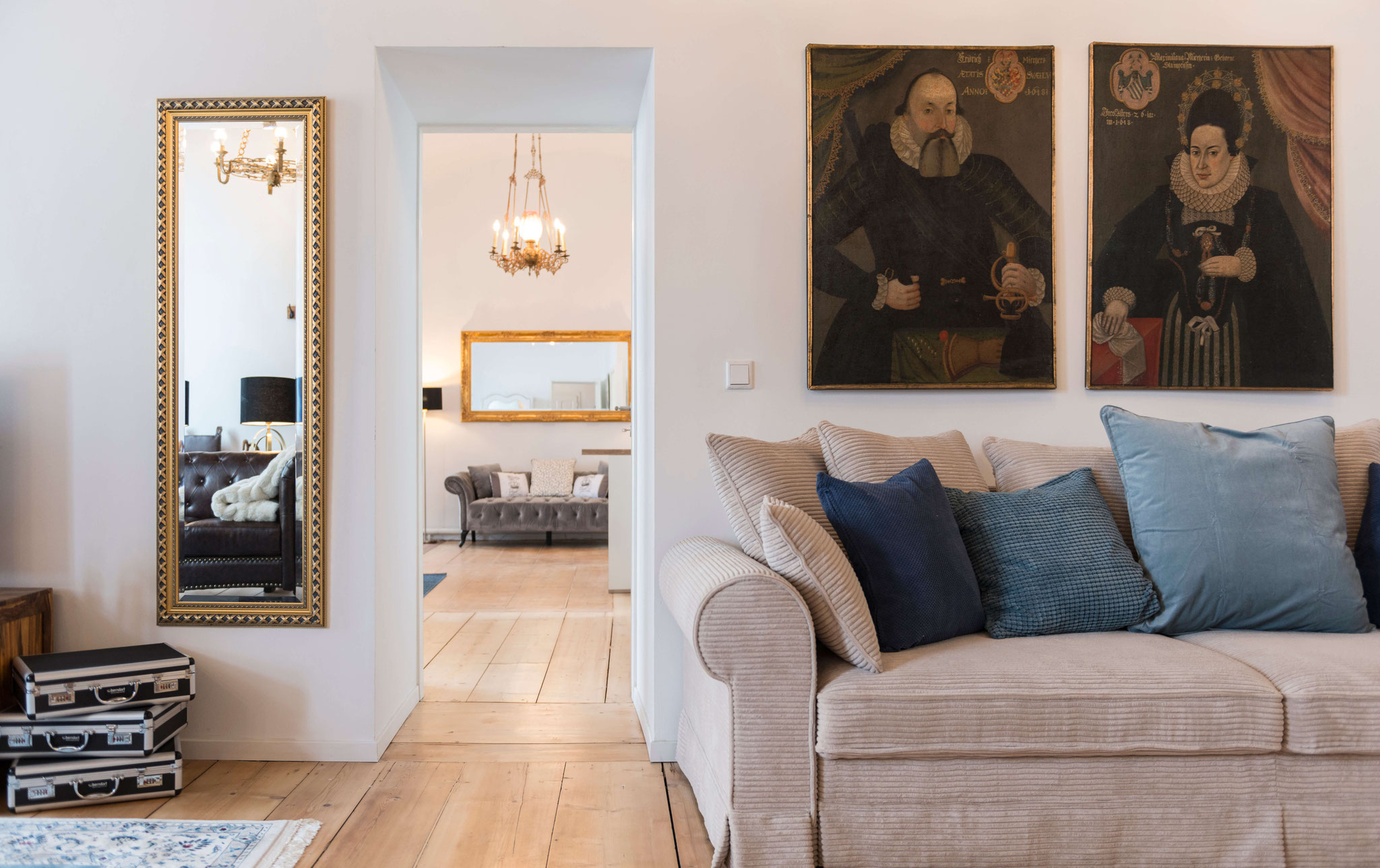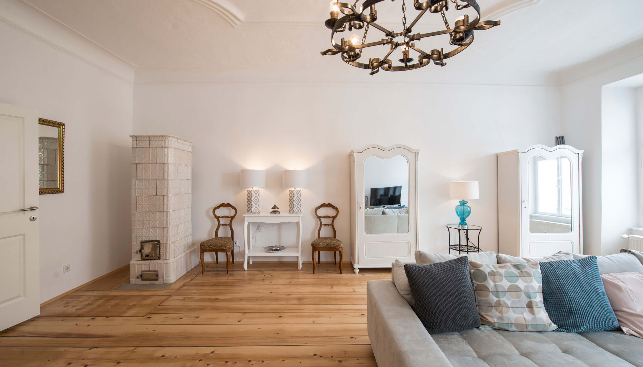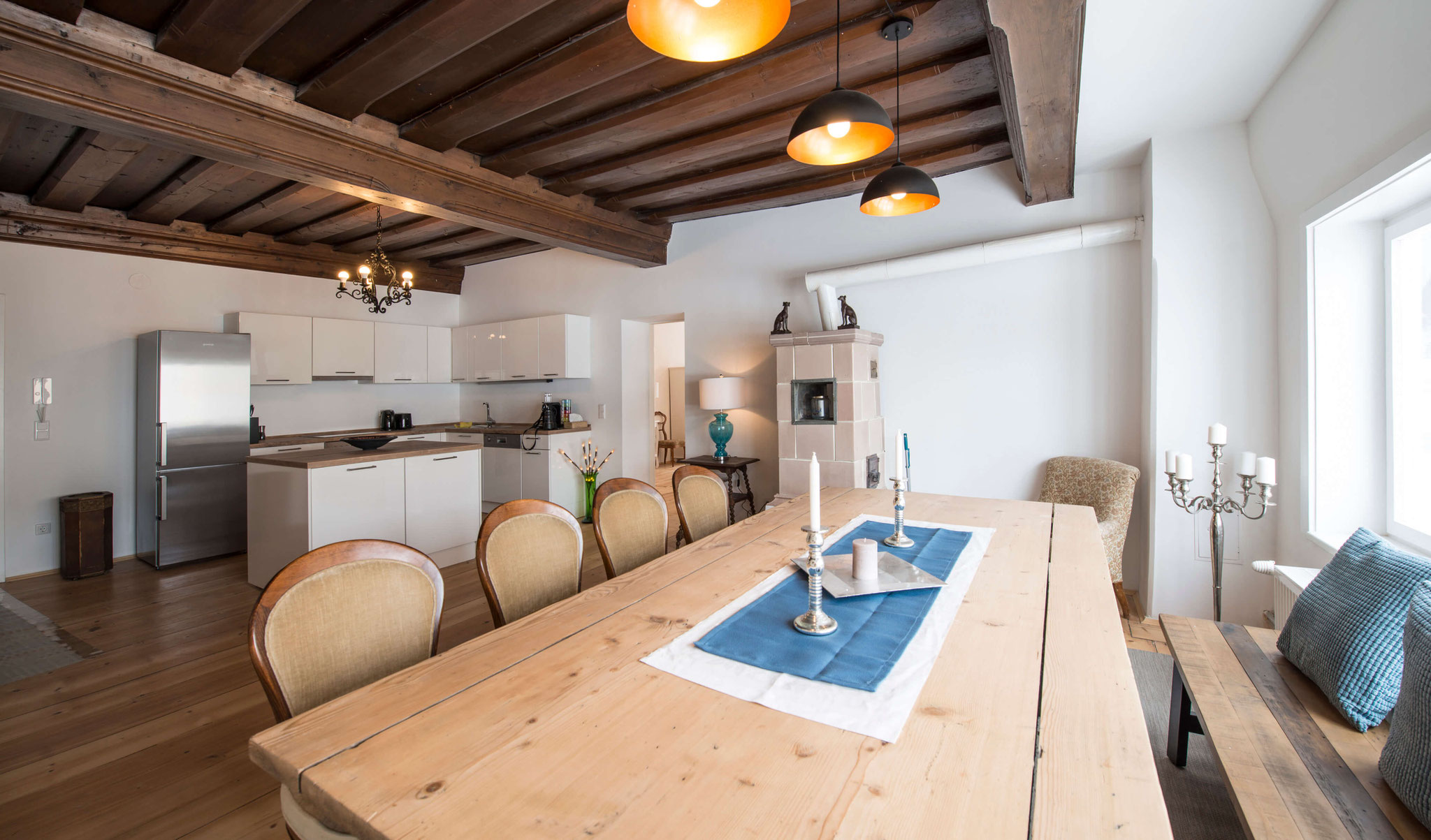The most romantic apartment in the Hoferhaus, with 74 sqm of cozy space. Here, historical furniture meets lovingly selected new pieces. A highlight is the cheerful kitchen with dining table. Besides the tastefully furnished bedroom, you can use another room for relaxing, working, or as a sleeping area.