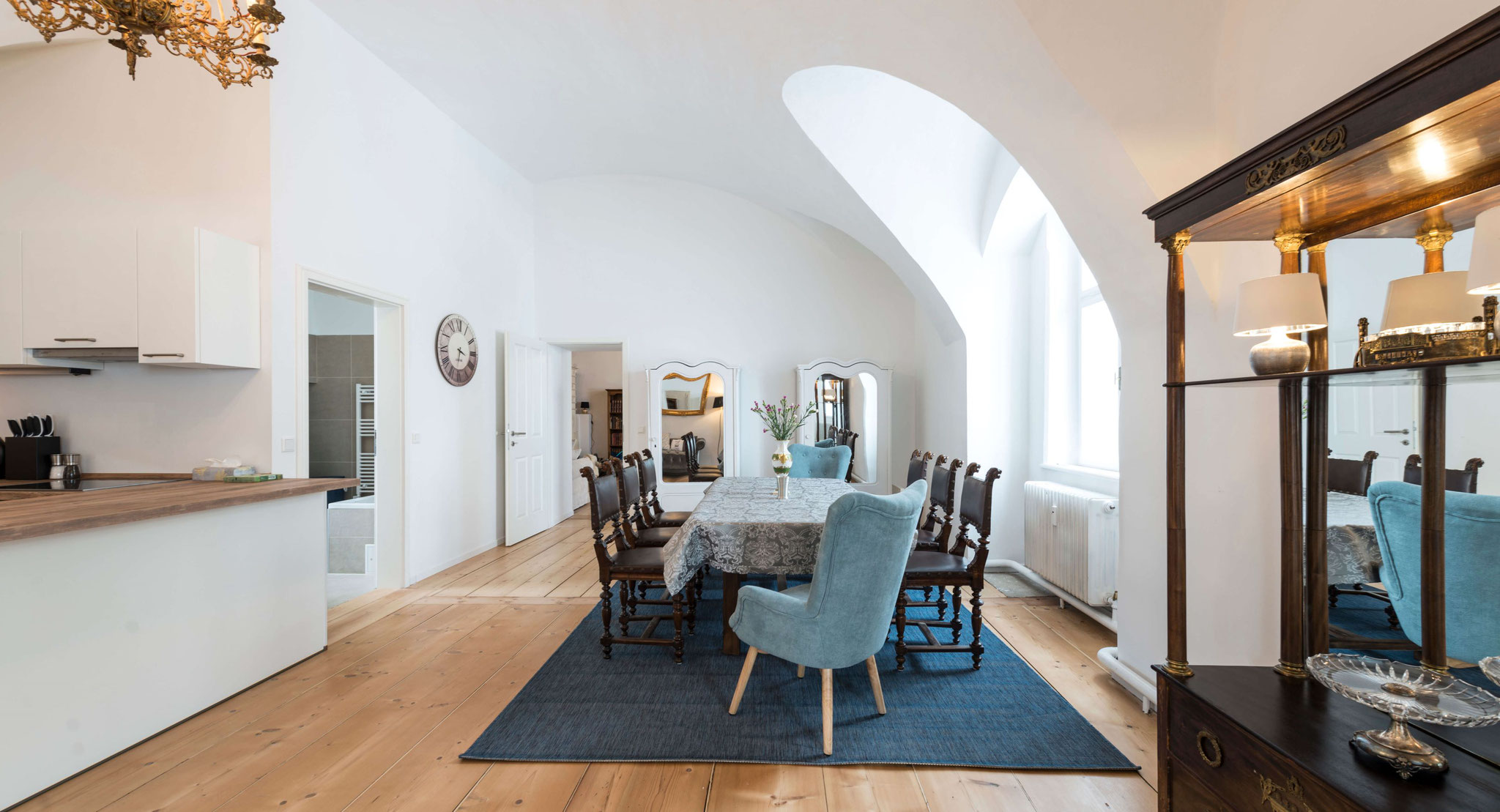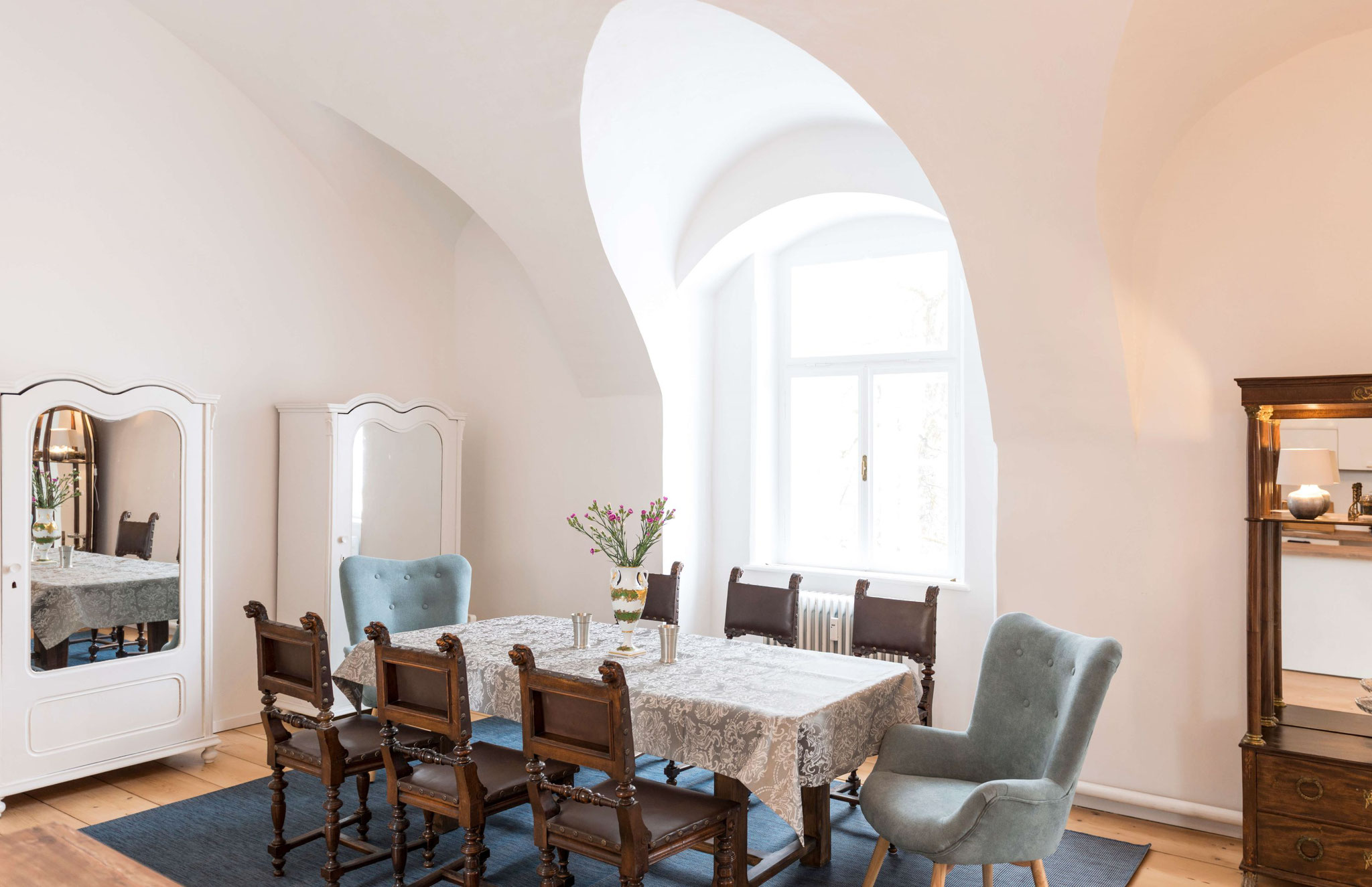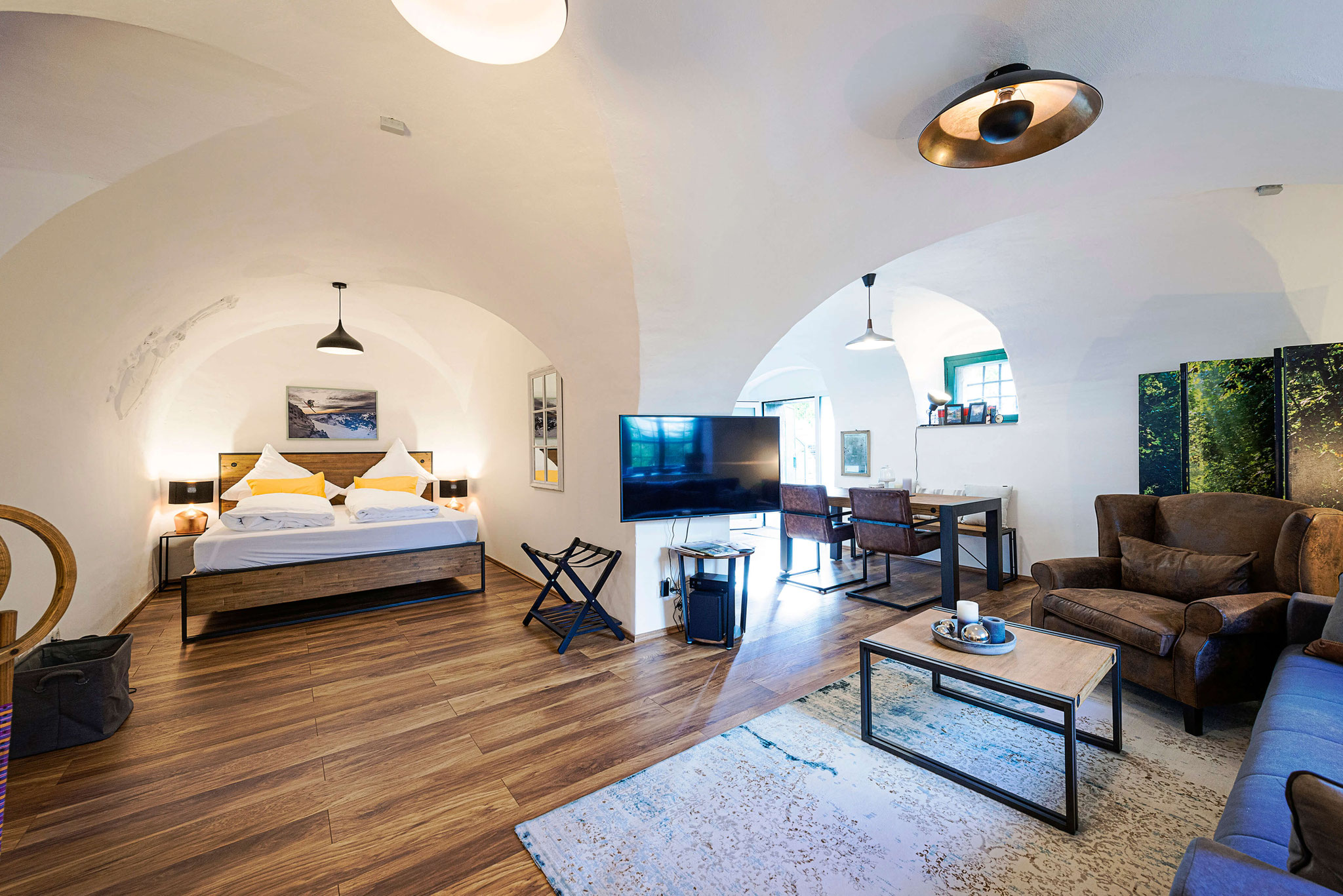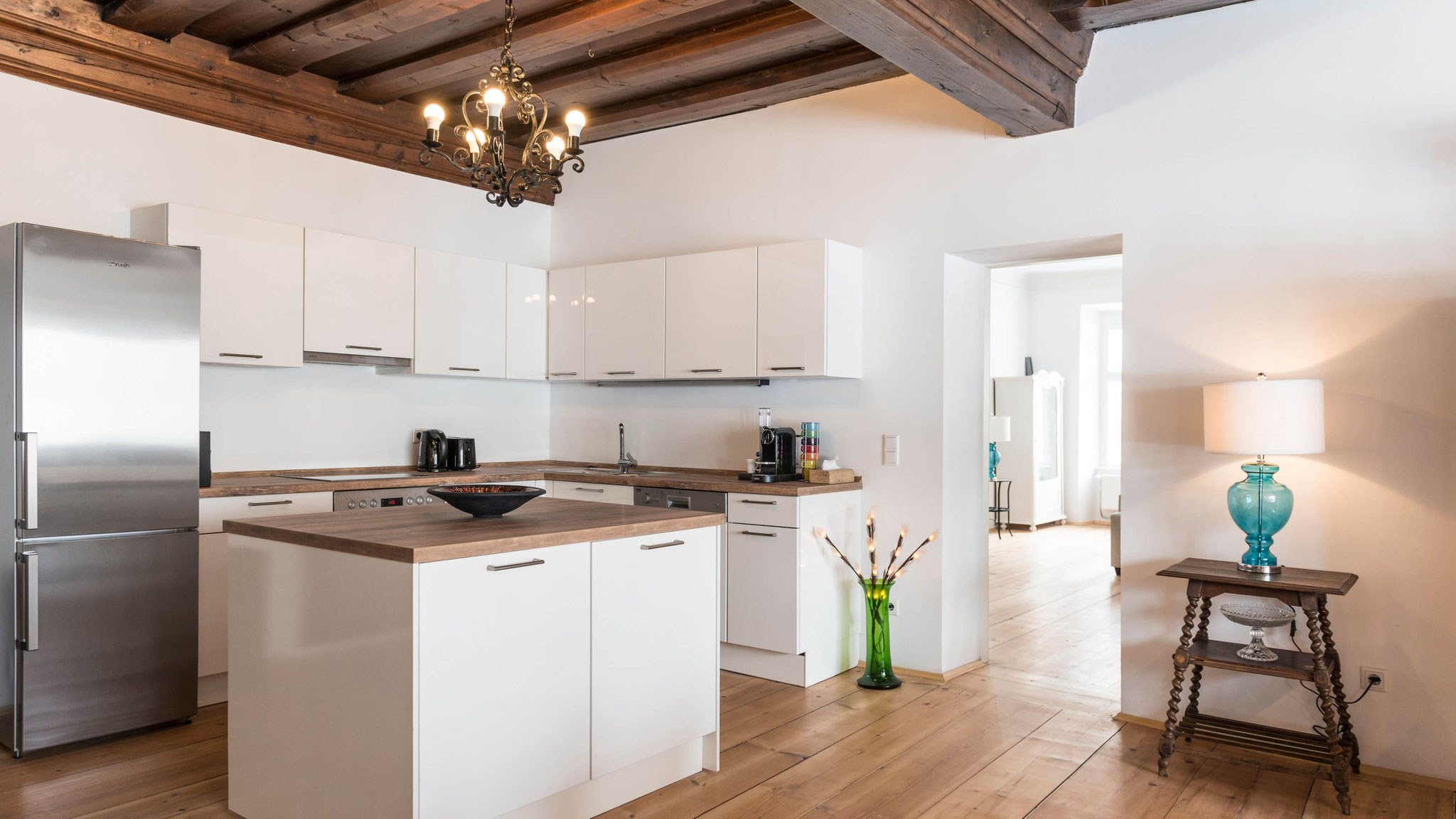 The most romantic apartment in the Hoferhaus, with 74 sqm of cozy space. Here, historical furniture meets lovingly selected new pieces. A highlight is the cheerful kitchen with dining table. Besides the tastefully furnished bedroom, you can use another room for relaxing, working, or as a sleeping area.