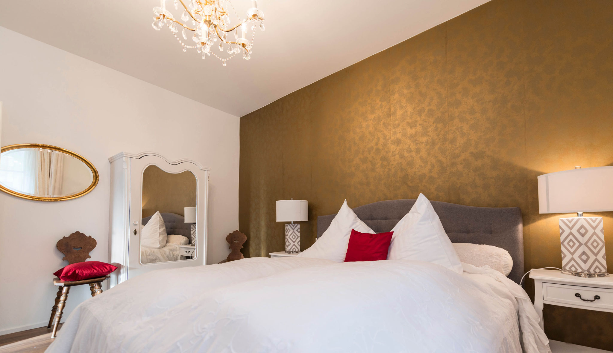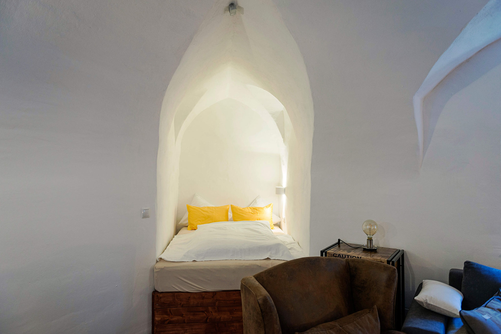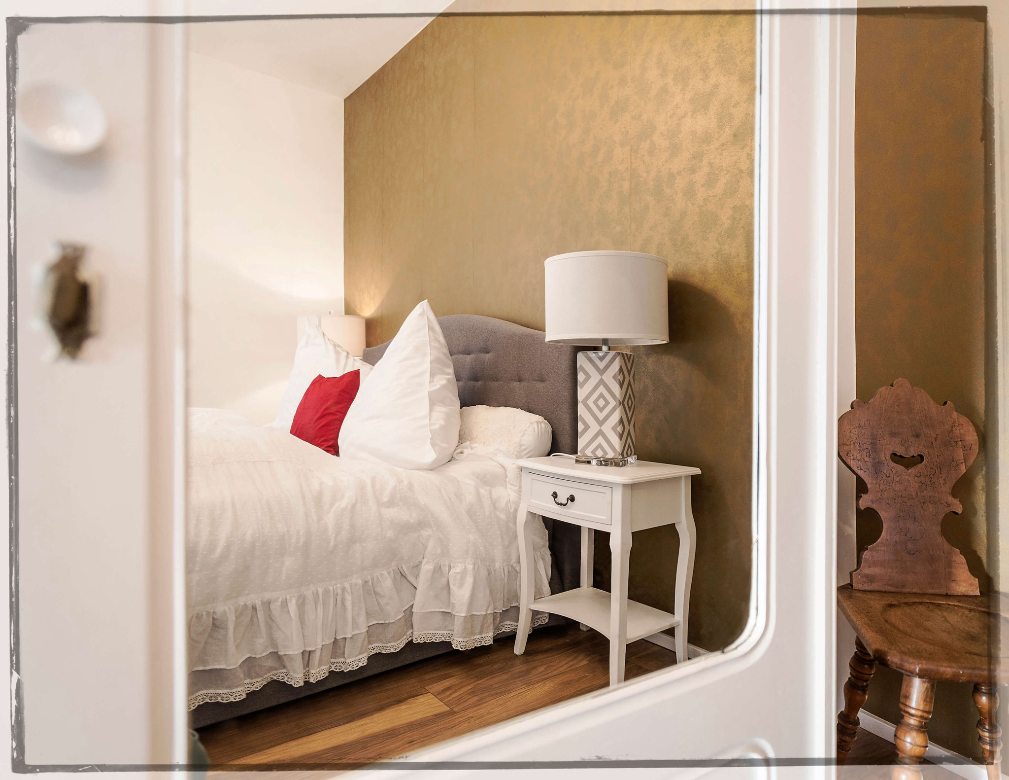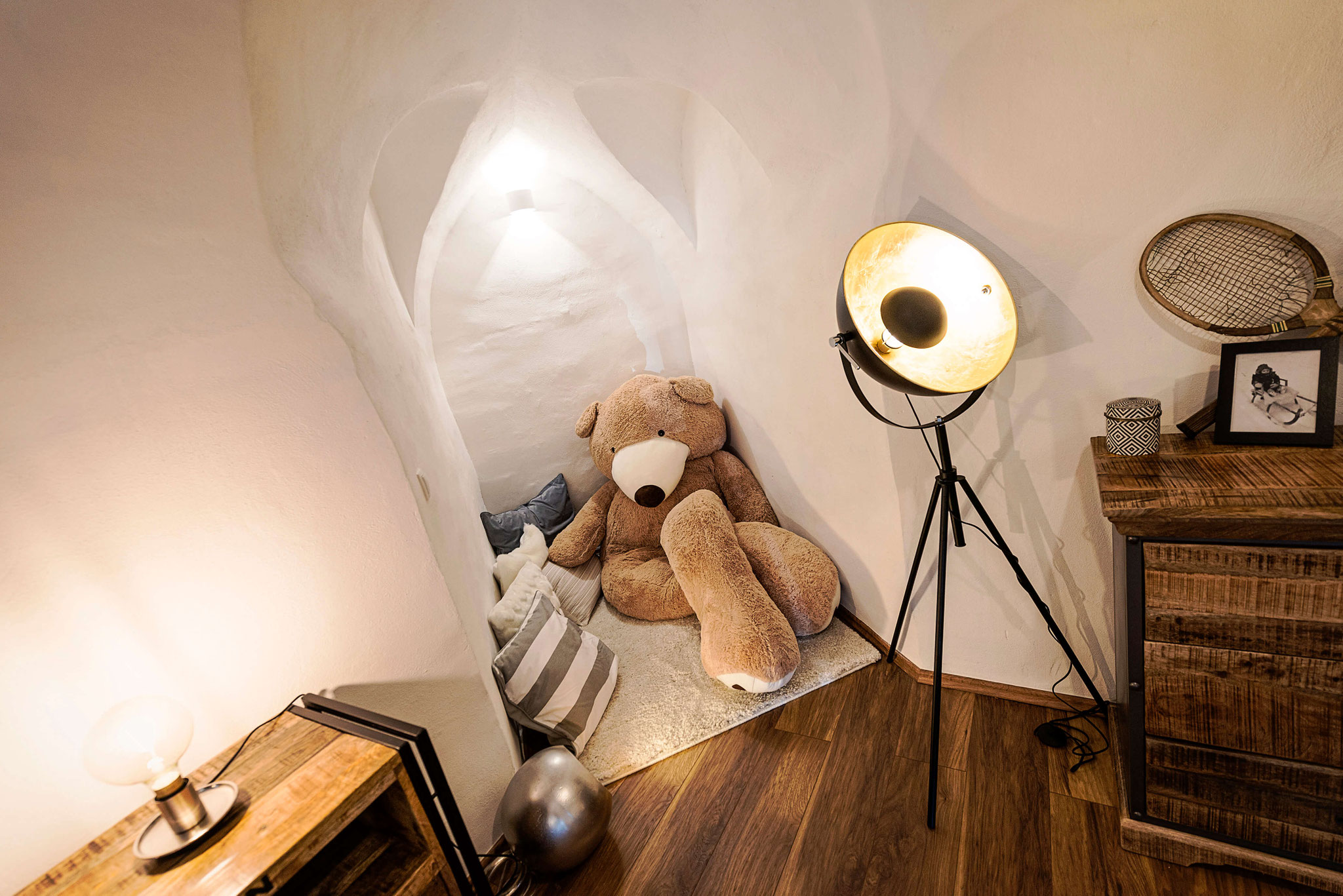 As a tribute to the former owner, his grandson designed this loft-style apartment in the vault. Here, you’ll find warm colors, cozy living flair, and fabulous details. The apartment features a cozy nook bed for two children or friends and a delightful atmosphere. The special feature of this apartment: you have your own garden, surrounded by greenery yet private.