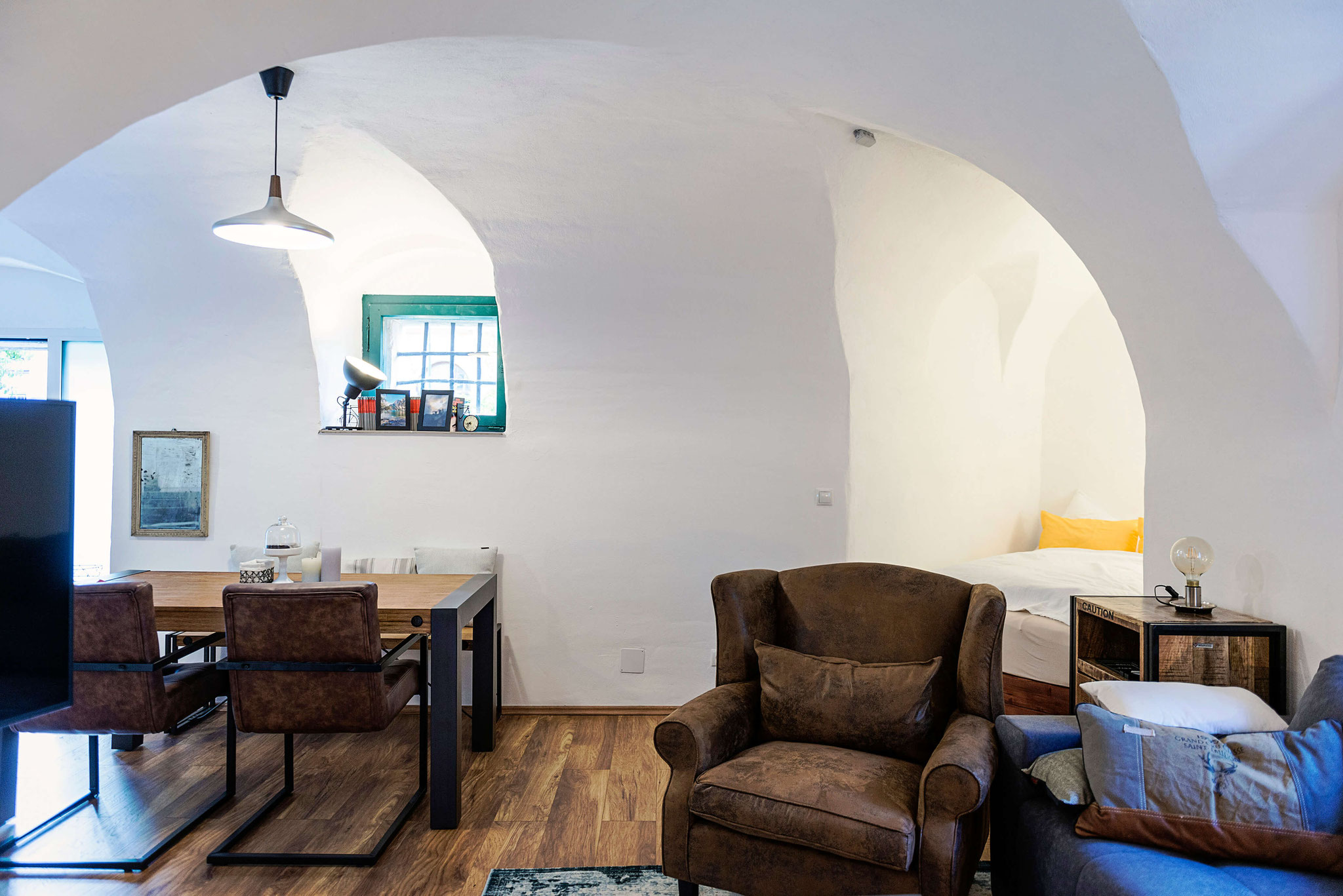 On the ground floor of the historical Hoferhaus in the heart of Bad Aussee is the Konrad apartment.