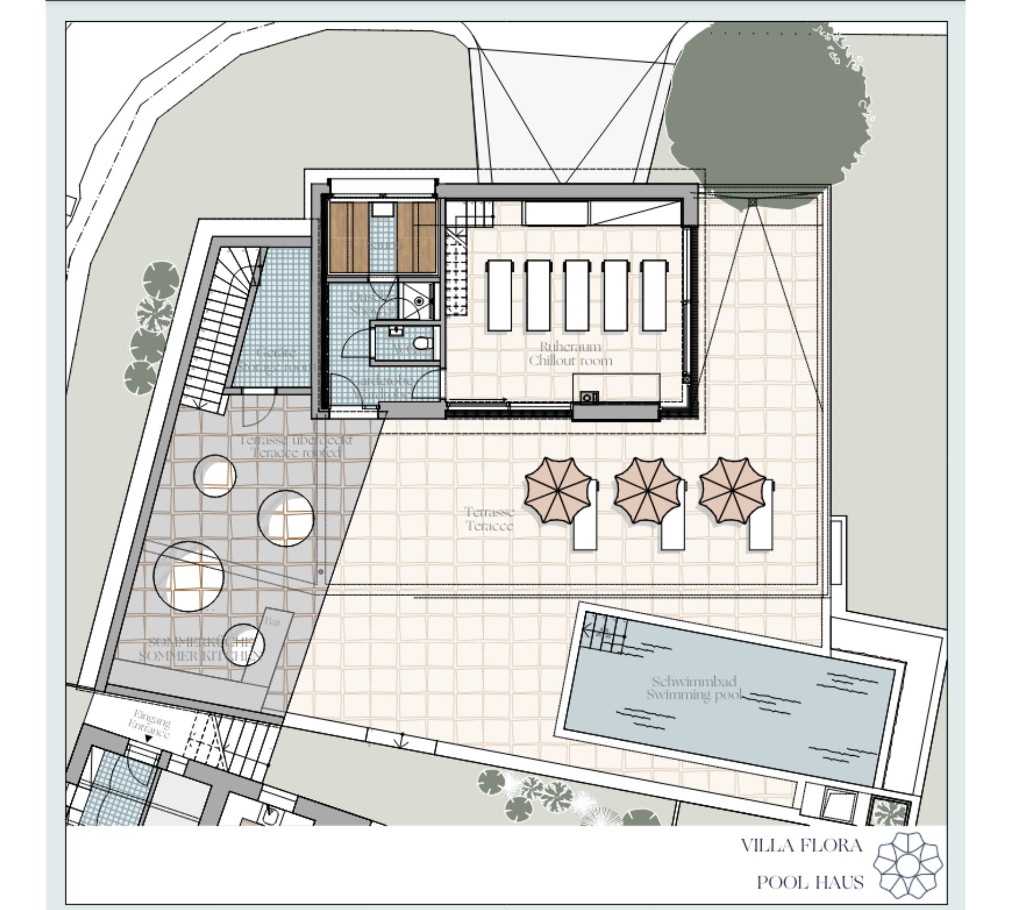 The heated 35 sqm outdoor pool, available from April to October, lets you lose track of time. Relax on the cozy loungers, whether in the sun or under a shady umbrella—it’s your choice. A pool house with a sauna completes the wellness offerings at Villa Flora.