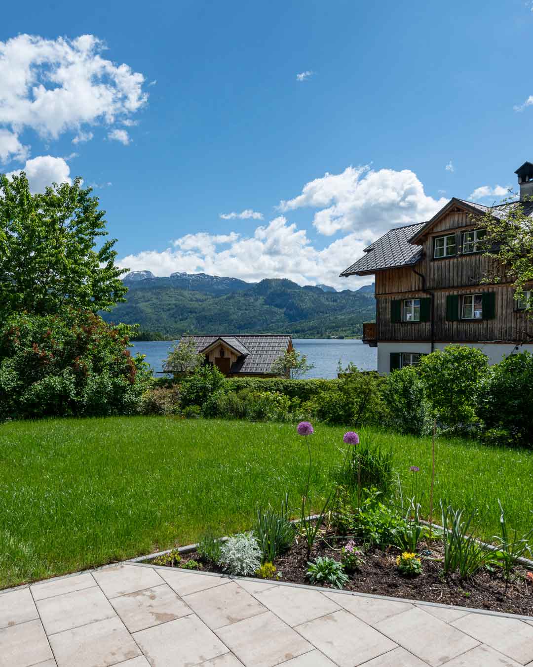Vacation at Grundlsee - In our apartment Haus Sonnenschein, you’ll enjoy a lake view, a small garden with a terrace, direct access to the lake, and a cozy holiday home interior.