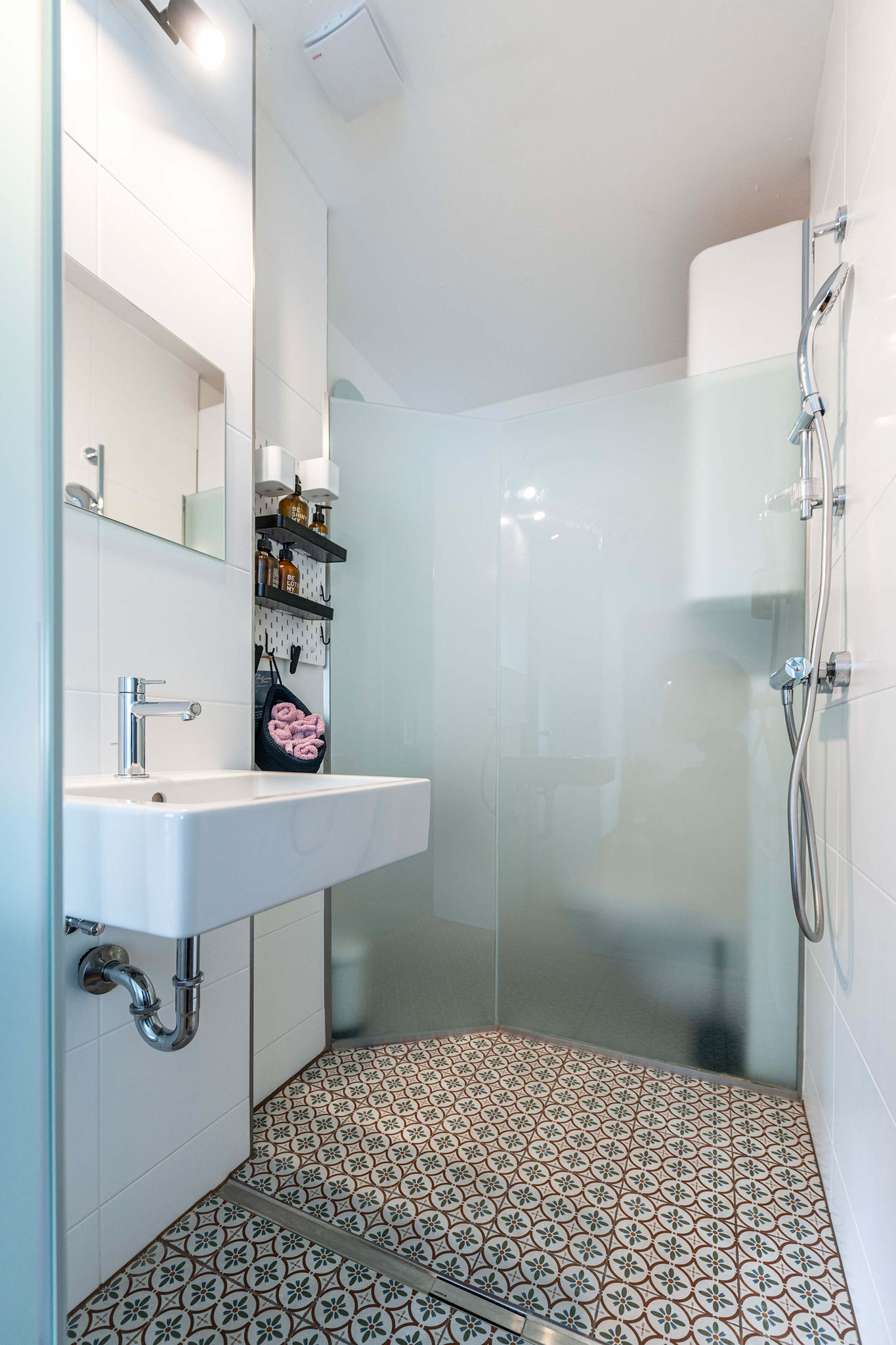 On the first floor, you’ll find 50 sqm of your new lakeside retreat. The spacious kitchen-living room provides a direct view of the lake, while the reading corner becomes your favorite spot by the window. If you’re four, the sofa bed easily transforms into a comfortable double bed. The small bathroom features a shower, and the bedroom has a double bed with a modern walk-in closet.