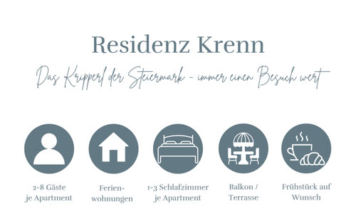 Apartment 1, 2 oder 3? Welche Unterkunft darf es sein in der Residenz Krenn in Pürgg? Platz haben Sie in allen drei Wohnungen mehr als genug. Ob Sie zu zweit oder mit Familie und Freunden anreisen bleibt selbstverständlich Ihnen überlassen, wir haben in den exklusiv eingerichteten Wohnungen Platz für all Ihre Lieben und Ihre Wünsche.